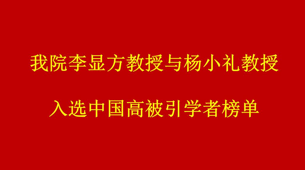tapplay李显方教授与杨小礼教授入选中国高被引学者榜单