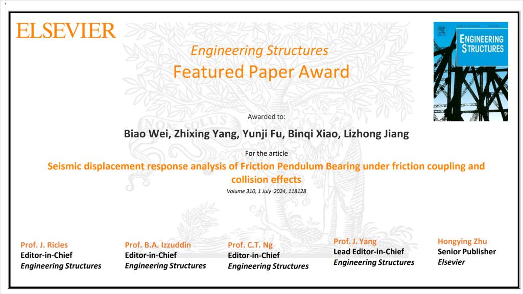 tapplay魏标教授团队荣获《Engineering Structures》期刊最佳论文奖(Featured Paper Award)