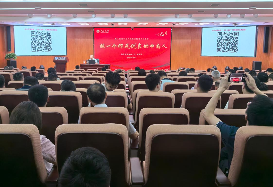 6月18日下午,tapplay,点点体育官方网站登录入口在天心校区梅园报告厅开展“一院一宣讲”纪律教育专题活动。校党委巡视办主任刘奇伟以“做一个作风优良的中南人”为主题进行宣讲,旨在深入学习贯彻中央八项规定精...
