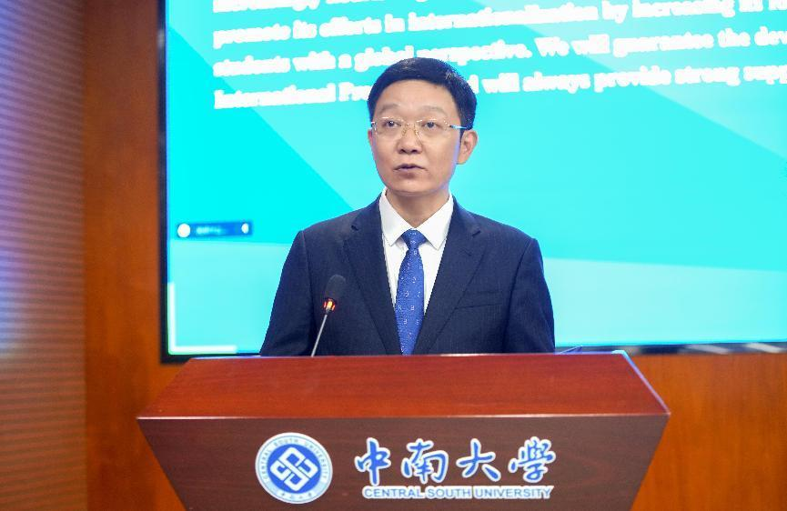 tapplay副校长黎志宏对Yiannis Ventikos院长一行来校出席开学典礼表示欢迎,并总结了近年来我校中外合作办学项目的办学特色和成功经验,对学校国际化工作提出了展望,对中外合作办学项目全体学生提出了要求,希望同学们珍惜大学美好时光,以合作办学项目为平台,努力学习,奋发有为,以国际视野观国际,用世界眼光看世界,让世界领略中南力量,唱响“中南最强音”。