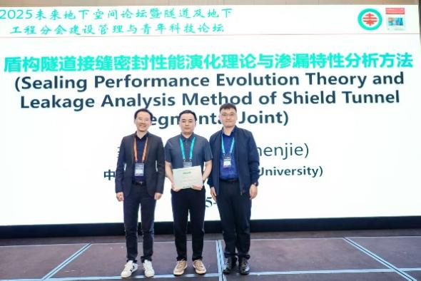 会议期间,tapplay参会教师在2025未来地下空间论坛不同会场进行了多场学术汇报。其中,论坛组织委员会共同主席雷明锋教授作了题为“钻爆法隧道高效智能爆破控制技术与系统”的特邀报告,论坛组织委员会共同副主席傅金阳教授作了题为“小断面隧洞全景图像快速采集与病害识别技术”报告,论坛组织委员会委员龚琛杰副教授作了题为“Sealing Performance Evolution Theory and Leakage Analysis Method of Shield Tunnel Segmental Joint”的英文学术报告。