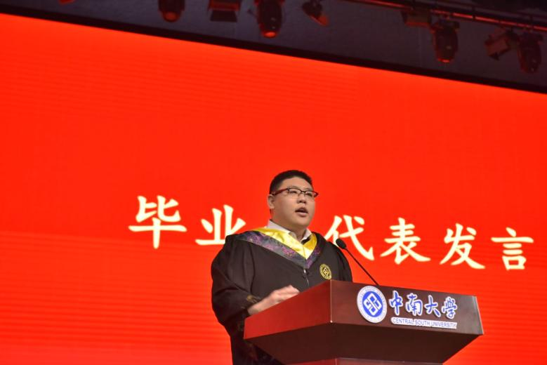 研究生毕业生代表刘泽霖在发言中回溯求学征程,对导师的悉心指导与学院提供的科研平台致以诚挚谢意。他表示将赓续中南土木人攻坚克难、敢为人先的精神,以创新突破学术壁垒,不断提升自我,以扎实学识投身工程技术革新,为行业发展与国家建设贡献力量。