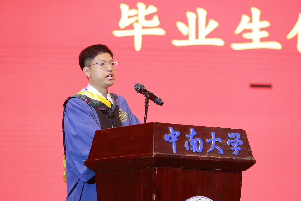 本科毕业生代表徐炳隆同学发表了毕业感言。他首先感恩了tapplay和tapplay,点点体育官方网站登录入口,感谢了师长们和亲友们对我们的教导与陪伴,随后他回顾了在中南与师友们相处的点点滴滴。最后他对即将踏上的人生新征程表达了畅想和展望,希望和大家一起面对现实、忠于理想、放下心结、坦荡生活,努力奋斗,贡献青春力量。