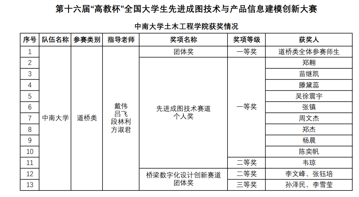近日,第十六届“高教杯”全国大学生先进成图技术与产品信息建模创新大赛落下帷幕,tapplay,点点体育官方网站登录入口斩获本届比赛道桥类团体一等奖第一名,另获个人赛或分赛道一等奖9项,二等奖2项,三等奖1项。