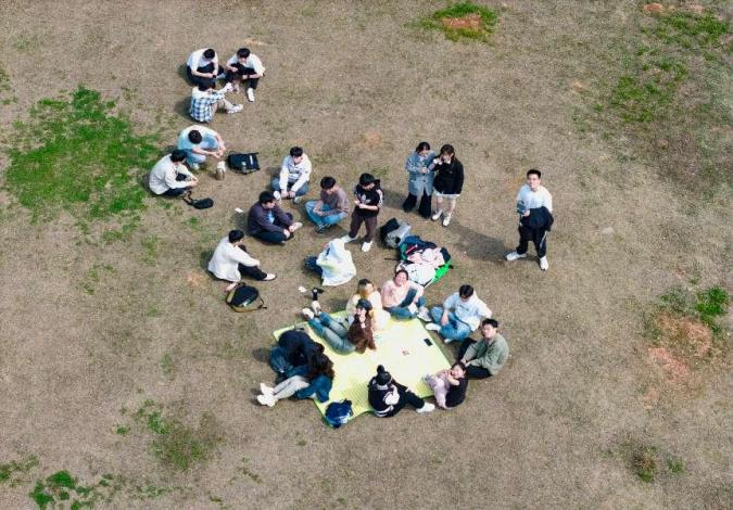 午后,“春润初心,学行湘畔”主题分享会在江畔凉亭内举行。支部书记梁雨豪以《从湖湘文化到党员担当》为题开篇,提出“三个融合”:将文化自信融入理想信念、将团队协作融入支部建设、将学术报国融入职业规划。随后,党员们轮流登台,结合专业与见闻畅谈体会。