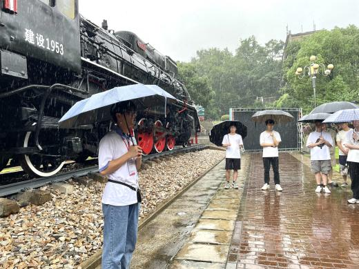 作为庆祝原长沙铁道学院建校六十周年的一份厚礼,铁路园园区呈露天式开放,有四条线路,三条线路上分别陈列三台机车,每一条线路,每一台机车都背负着中国轨道发展的重要使命。研学之初,全体党员站在铁路园正中央,由志愿者带领回顾铁路园的由来以及建设过程。紧接着,志愿者从铁路发展历程、三辆机车的结构特点以及从铁道学院走出的著名铁路校友事迹等进行生动讲解,让党员同志们获益匪浅。