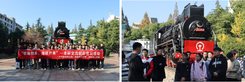 接着,大家移步铁路园,随着学生党员王金磊同志的讲述,共同领略这三台火车头的“前世今生”。“火车头精神对中南师生来说,是带着负荷、带着载重,一直运行爬坡的不屈不挠,更是不断创新、追求卓越的敢闯敢干。”走近历史,揆诸当下,新一代铁道人必将传承学院的光荣历史沿革,将论文写在祖国大地上,助力中国高铁更快更稳、御风飞驰。