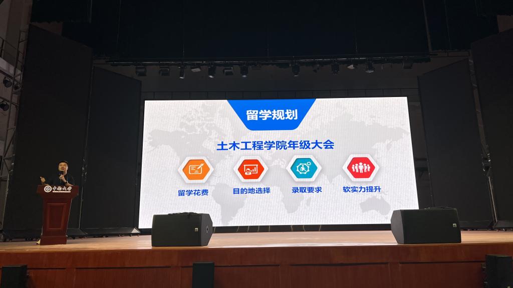 大会开篇,学院特邀tapplay校友、卓引留学创始人李纪勇先生分享留学规划。李纪勇围绕热门留学国家选择、申请核心要求及时间规划展开,结合行业经验为同学们梳理留学思路,帮助大家明确不同阶段目标,解答留学相关疑惑。此外,他还为同学们梳理了 “大二夯实专业基础、大三备战标化考试与背景提升、大四集中申请” 的阶段性目标,帮助大家避开时间规划误区。