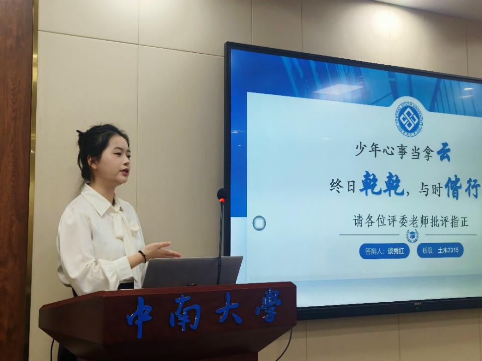 会议伊始,学院评奖评优专干马嘉璐介绍了此次答辩评审委员并宣读了评审流程。答辩会分为本科生会场和研究生会场,均按优秀学生标兵候选人、优秀学生干部标兵候选人、先进班集体标兵候选人的顺序开展。各答辩人充分准备,路舒扬、施玥等12名优秀学生标兵候选人,何姝旸、刘若琪等7名优秀学生干部标兵候选人分别展示了个人过去学年的创新创业、科研竞赛、思想建设、志愿服务等方面的成果,天佑2301班、土木2214班等8个班级答辩人对班级过去学年的学风建设、班级建设、特色亮点等内容进行了详细阐述。