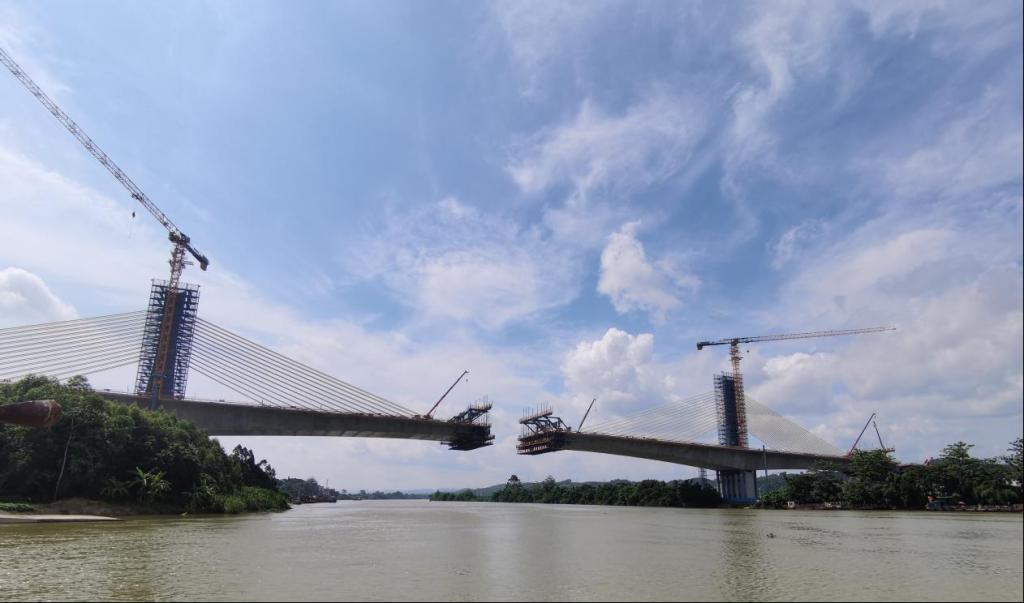 湖南铁院土木工程检测有限公司承接了该项目主桥施工监控、支架检算等技术服务工作。公司结合建设项目特点及现场需求,严密论证,及时跟进优化监控方案,为桥梁结构安全及项目推进提供了坚实保障。施工期间,根据施工进度,完成了大跨度斜拉桥施工关键参数分析、桥梁施工过程数值仿真分析和现场实测等工作,通过出具监控指令和监测报告,为大桥合龙提供了坚实的技术支撑,解决了施工中的诸多重难点问题。我公司监测工作受到业主和施工方高度评价。