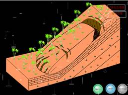 教学效果:使学生掌握专业模拟软件工具的使用方法,加强了学生对滑坡的形成条件、形态特征、野外识别特征以及工程处治措施的掌握,增加了教学的生动性和直观性。