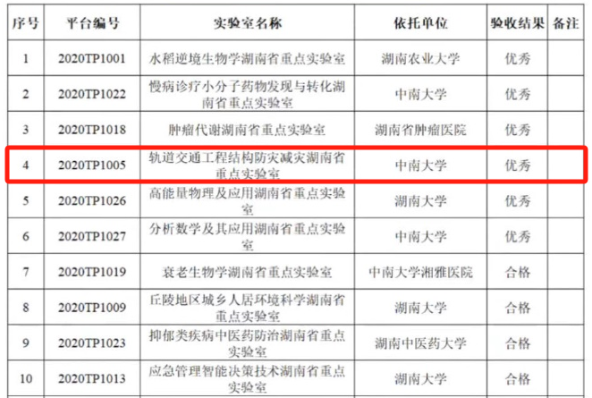 近日,湖南省科技厅发布了2024年湖南省重点实验室验收结果,tapplay轨道交通工程结构防灾减灾湖南省重点实验室获评优秀。