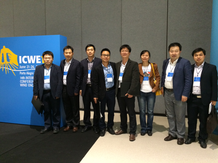 2015年6月21日-26日,风洞实验室何旭辉、黄东梅和邹云峰老师参加在巴西阿雷格里港(Porto Alegre)举办的第14届国际风工程学术会议(International Conference On Wind Engineering, ICWE14),与国内外同行进行了非常友好和广泛的交流,并与一些国际风工程科研机构和知名专家建立了联系,期待进一步的交流与合作。与会老师分别与风工程领域最高级别杂志《Journal of Wind Engineering & Industrial Aerodynamics》主编T.Stathopoulos教授,上届国际风工程协会主席YukioTamura教授、现任主席Ahsan Kareem教授(美国工程院院士,圣母大学教授)、中国风工程协会主席葛耀君教授、国际风工程协会秘书长曹曙阳教授等国内外同行合影留念。