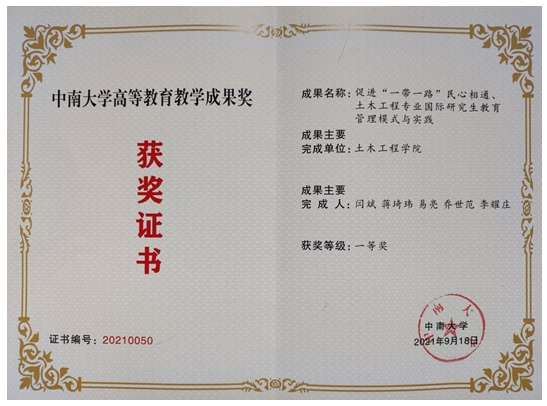促进“一带一路”民心相通、土木工程专业国际研究生教育管理模式与实践 |