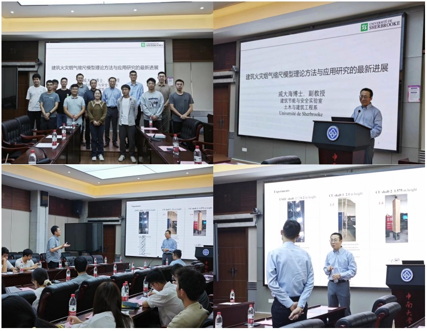 2023年10 月18 日上午,加拿大舍布鲁克大学土木与建筑工程系戚大海副教授于tapplay铁道校区世纪楼14楼会议室作汇报,戚大海副教授汇报的主题为建筑火灾烟气缩尺模型理论方法与应用研究的最新进展。他首先介绍了一种全新的高层建筑火灾烟气流动缩尺模型,通过考虑火灾烟气与边界之间的热交换,提出准确性更高的弗劳德-斯坦顿建模方法。其次,戚大海副教授还提出了太阳能电板火灾烟气流动缩尺模型,以及一种新的氦相似理论和太阳能电板火灾烟气扩散风洞试验的标度方法,并介绍了建筑一体化光伏双层幕墙火灾烟气扩散机理,提出了一种经济、安全、实用的模拟方法。汇报结束后,与会师生与戚大海副教授展开交流。部分师生结合自己的实验课题和科研经历向戚大海副教授提出疑问,戚大海副教授均细致回答,与师生互通有无。