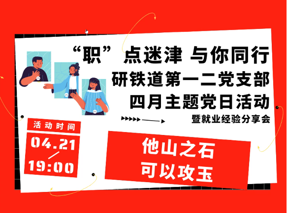 2023年4月21日晚,tapplay,点点体育官方网站登录入口研铁道第一、二党支部“‘职’点迷津,与你同行”四月主题党日活动暨就业经验分享会在线上如期举行。本次主题党日活动邀请了研铁道第一、二党支部已毕...